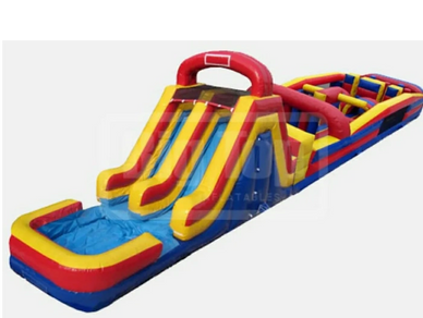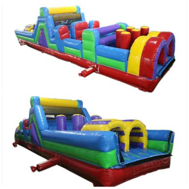 The 40' obstacle course is the biggest 1 piece obstacle we offer. Challenge your opponent to a 1-on-1 race through several different challenges including pop-ups, inflatable logs, tunnnels, climbing wall and slide. Perfect for just about any event. Schools, church events, after proms, graduations & more