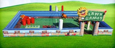 The lawn games arena is a huge inflatable that offers several options for up to 10 players at a time. Perfect for corporate events, family reunions, graduation parties, summer events and more. Includes the following games: