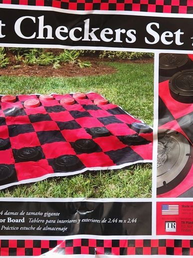 Giant checkers features (24) ten inch checker pieces and a 8' x 8' fabric checker board. Great for indoor or outdoor events, summer events, picnics and more.