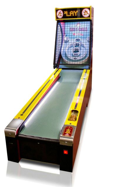 Skee ball is here! A classic favorite. Use your skill and strategy to score as many points as you can using 9 authentic skee balls. The game is set to free play. It lights up and makes sound too.