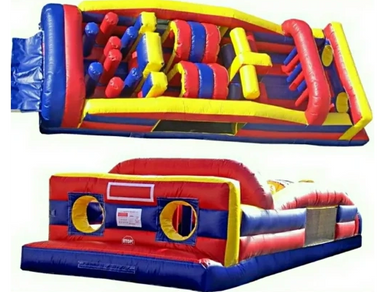 The 62' obstacle course offers challenges one after another until the 2 players reach the climbing wall and 15' slide. This is a great form of exercise and fun all wrapped up into one. Great for schools, church events, company picnics, graduation parties, festivals and more.