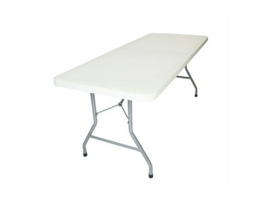 30' x 96" (8 ft.) Rectangle plastic folding table. Steel locking frame.