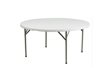60" (5 ft.) Round plastic folding table. Steel locking frame.
