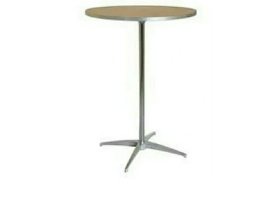 30" round hightop cocktail table. 42" Bar height or 30" pub height. 3 piece steel locking mechanism.
