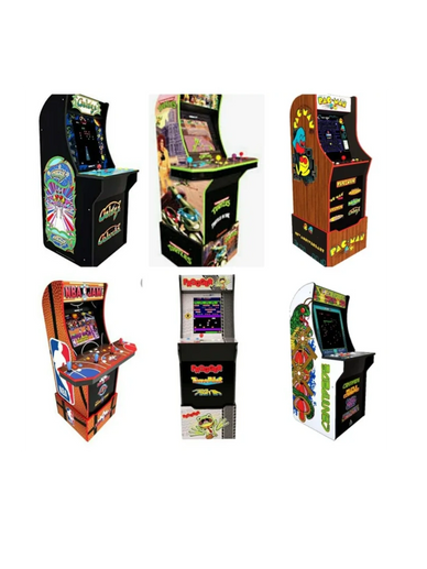 Mini arcades are here! Classic games with the classic experience. The 5' tall lightweight 3/4 size arcade cabinets make it possible to create a classic arcade just about anywhere. We provide the game cabinets and cool led lighting. Available cabinets: