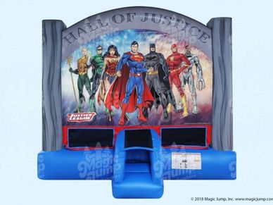 Official licensed DC Comics - Justice League bounce house. This is a great way to celebrate a birthday or just about any occasion for super hero fans. Superman, Batman, Wonder Woman, Flash Gordon and more. Bounce house in Noblesville, Indianapolis, Cicero, Westfield, Carmel, Fishers, Tipton and central Indiana. Bounce house rentals.